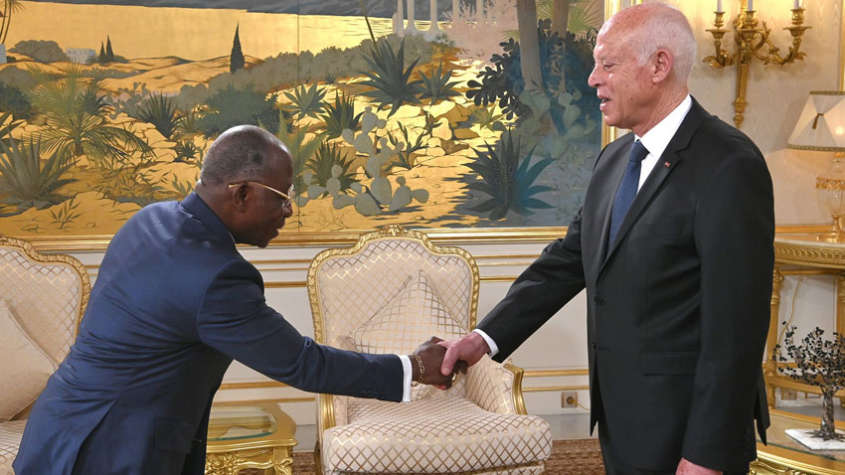 استقبل رئيس الجمهورية قيس سعيّد، أمس الجمعة بقصر قرطاج، وزير الشؤون الخارجية والاندماج الإفريقي والإيفواريين بالخارج، ليون كاكو آدوم .
