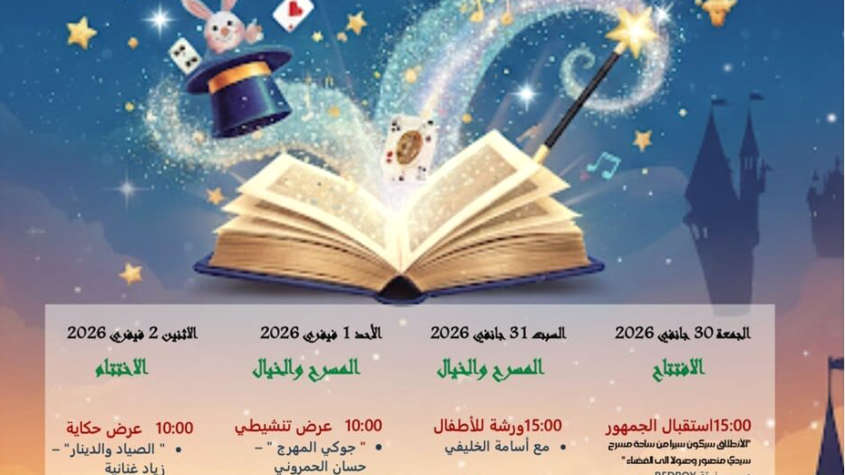 تنطلق اليوم فعاليات الدورة الرابعة لـ”مهرجان ABRACADABRA للمسرح السحري للأطفال “و الذي يتواصل الى 2 فيفري المقبل بمقرّ المركز الثقافي “راد بوي “بصفاقس.