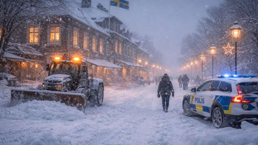 من موجة طقس شتوية قاسية في قويًا قادمًا من بولونيا وألمانيا سيتحرك شمالًا نحو السويد، مما سيؤدي إلى ثلوج غزيرة خاصة في منطقة أوسترلين جنوب شرق البلاد..