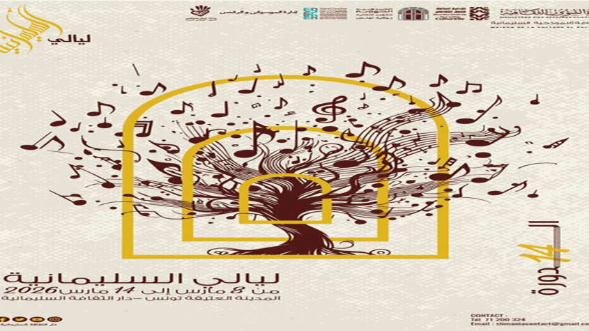 تنظم دار الثقافة النموذجية السليمانية تحت إشراف المندوبية الجهوية للشؤون الثقافية بولاية تونس، الدورة الـ14 لمهرجان ليالي السليمانية، وذلك من 8 إلى 14 مارس المقبل بالمدينة العتيقة بتونس العاصمة.