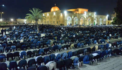 القدس: 100 ألف مصلٍ يؤدون صلاتي العشاء والتراويح في المسجد الأقصى