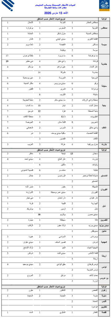 كميات الأمطار المُسجلة خلال الـ24 ساعة الماضية