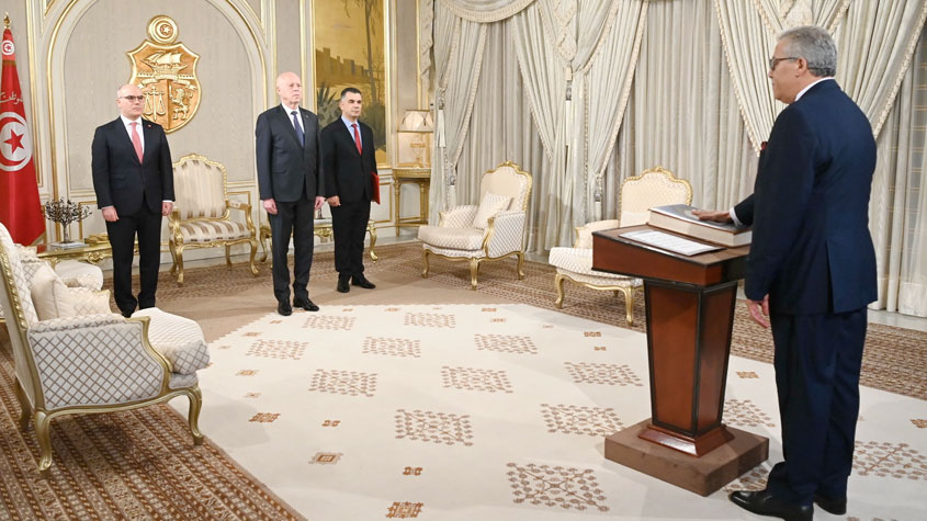 وادىالسفراء الجدد اليمين أمام رئيس الجمهورية بحضور نبيل عمار وزير الشؤون الخارجية والهجرة والتونسيين بالخارج.