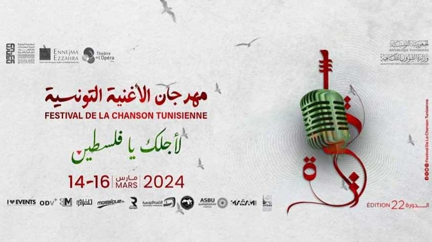 تحت شعار «لأجلك يا فلسطين» ستنطلق الدورة الثانية والعشرين لمهرجان الأغنية التونسية في دورة اختارت هيئتها المديرة أن تكون دورة استثنائية تمتد من 14 الى 16 مارس2024 وتنظمها المؤسسة الوطنية لتنمية المهرجانات والتظاهرات الثقافية والفنية وبالشراكة مع مؤسسة مسرح الأوبرا ومركز الموسيقى العربية والمتوسطية وإدارة الموسيقى والرقص وبإشراف وزارة الشؤون الثقافية، وستتخلى هذه الدورة عن احتفاليتها المعتادة تضامنا وإلتزاما بالقضية الفلسطينية وهذا ما أكدته السيدة هند المقراني (المديرة العامة للمؤسسة الوطنية لتنمية المهرجانات والتظاهرات الثقافية والفنية) خلال الندوة الصحفية التي التأمت مؤخرا مشيرة الى أن مهرجان الأغنية التونسية ترجمة لإرادة تونس قيادة وشعبا في إعلاء صوت الشعب الفلسطيني المقاوم وليكون الركح متاحا للتعبير عن المقاومة الفلسطينية ونصرتها، ومن جهتها أكدت السيدة سلوى حفيظ (رئيسة لجنة تنظيم ومديرة الدورة الثانية والعشرين لمهرجان الأغنية)بأن مهرجان الأغنية خصص محوره حول المقاومة الفلسطينية فورد شعار المهرجان تحت عنوان» لأجلك يا فلسطين» وهي دورة استثنائية أرادت تونس من خلالها فسح المجال للمبدعين التونسيين خاصة والفنانين العرب عامة للتفاعل مع الأحداث التي أدمت القلوب وترجمتها من خلال إبداعات تتلاقح فيها الكلمات والألحان والحناجر لتعبر عن هذه الحرقة وتعطي دفعا معنويا وتترجم من خلالها مساندتها للقضية الفلسطينية. وقد تكونت لجنة انتقاء الأعمال التي ستشارك في هذه الدورة التي يحتضنها فضاء قاعة الأوبيرا بمدينة الثقافة من الملحن عبد الرحمان العيادي والشاعر خالد الوغلاني والفنان سليم دمق والموسيقي أنيس القليبي والموزع الموسيقي سامي المعتوقي وأيضا الموسيقي محمد بوسلامة