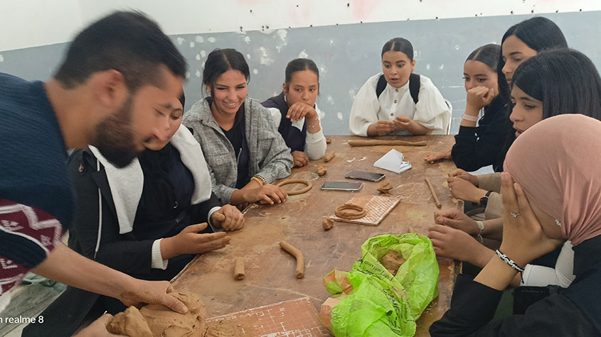 وأفادت أن الإعدادية التقنيــــة بجرجيس شهدت يوم الاربعاء 24 أفريــــل الجاري تظاهرة ثقافيـة في إطـار إحيــــاء شهر التـراث وبمناسبــة ملتقــى الموانســــة الدولي للخط العربي تضمنت فقرات فنية وشعريـــة للتعريف بتراث الجهــة فضلا عن عـــرض للباس التقليدي الذي يميز الجهة بالإضافة إلى تنظيم ورشات تكوين في الخزف والخط والطين والكي على مخلفات النخيل والجداريات معتبرة أن ذلك يمثل فرصة لتلاميذ الإعدادية التقنية للاطلاع عن كثب على مختلف هذه الفنون سواء التشكيلية منها أو المتعلقة بالخط العربي وكيفية توظيفه جماليا في مجال الفن التشكيلي والجداريات والرسم.