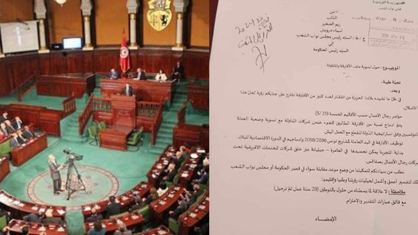وأكد من جانبه عضو مكتب المجلس المكلف بالتشريع حسام محجوب في تصريح لـ«الصحافة اليوم»، ان الاقتراح كان موجّها الى رئيس الحكومة وقرر مكتب المجلس عدم تمريره لانه يتنافى مع السياسة الخارجية لتونس ولسياسة الدولة في مجال التصدي للهجرة غير النظامية، مشيرا الى ان الوثيقة لا تلزم البرلمان في شيء.