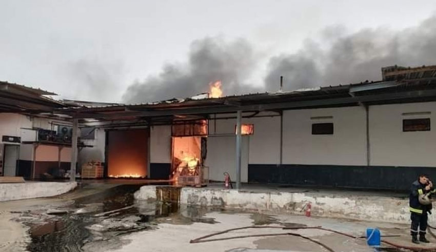 على مساحة جملية بحوالي 7500 متر مربع نشب مساء أول أمس الأربعاء حريق ضخم بمخزني تبريد لمواد أولية لصنع مادة الحليب ومشتقاته لشركة منتصبة بجهة سليمان التابعة لولاية نابل وذلك وفق ما صرح به المتحدث باسم الحماية المدنية معز تريعة لـ «الصحافة اليوم» مؤكدا أن النيران أتت على قرابة 5000 متر مربع  تحتوي على كميات كبيرة من مادة الزبدة ومواد أولية لصناعة الياغورت ومادة السكر.