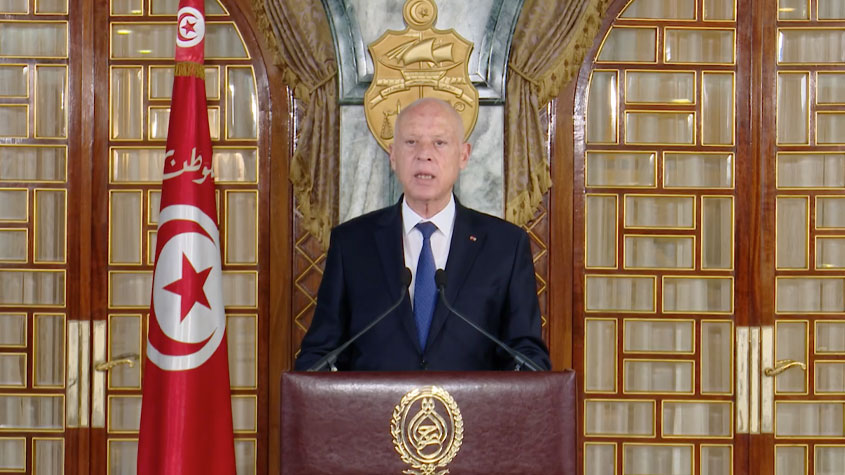 وشدد رئيس الجمهورية على  أن الوضع الذي نعيشه هو وضع غير مسبوق وهو صراع بين نظام سياسي جديد ومنظومة لم يقع تفكيكها بالكامل عادت الى التسلل في المدة الاخيرة لتتآمر قائلا «ليعلم الجميع أن المرحلة القادمة لن تتم ادارتها بشرعية أسقطها الشعب انها جمهورية جديدة نبنيها لا مكان فيها للصوص ولا للخونة ولا للعملاء فالشعب التونسي يريد تقرير مصيره بنفسه».