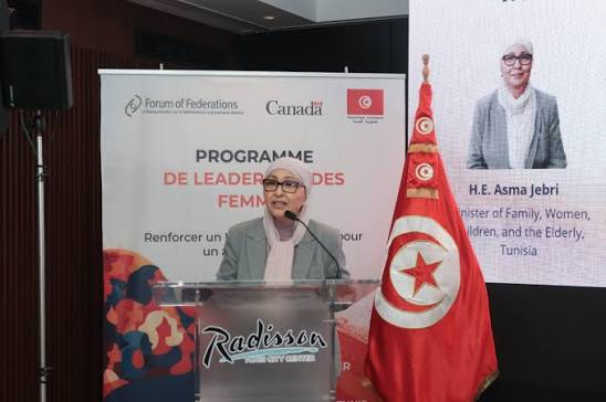 وأكّدت الوزيرة بحضور السيدة ديانا شيبونوفا نائبة رئيس منظمة منتدى الفيداراليات بكندا، أنّ المرأة التونسيّة متألقة في كلّ المجالات وفاعل أساسيّ في الشأن العام بمختلف أوجهه السياسية والاقتصادية والاجتماعية والثقافية والرياضيّة وهي نتاج لفكر داعم لحقوق النّساء ورؤية استراتيجيّة متجذّرة ومناصرة لتكافؤ الفرص بين المرأة والرجل.
