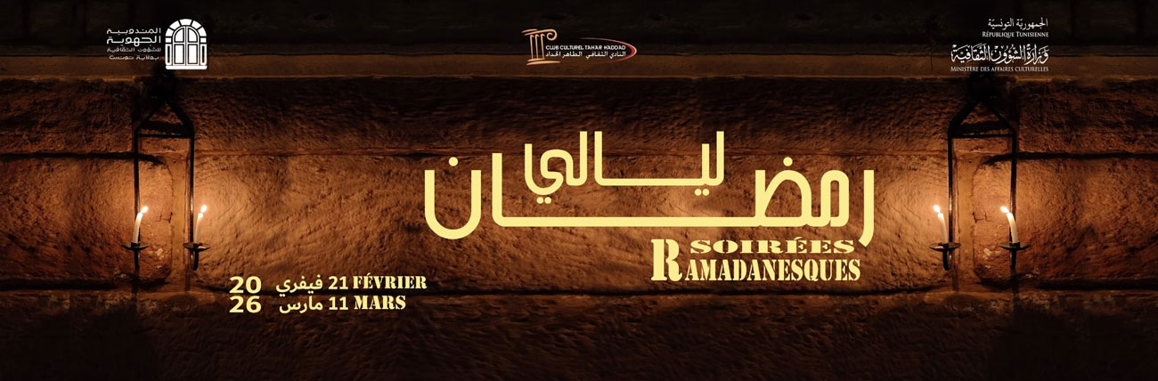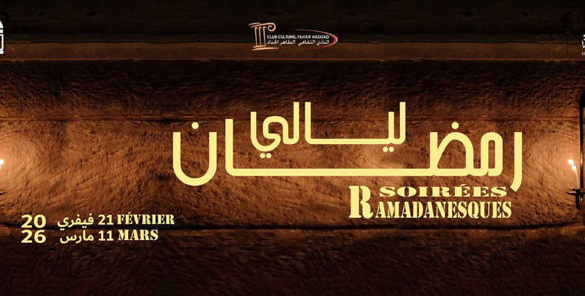 تلتئم تظاهرة ليالي رمضان بالنادي الثقافي الطاهر الحداد هذا العام من 21 فيفري إلى 11 مارس 2026 .