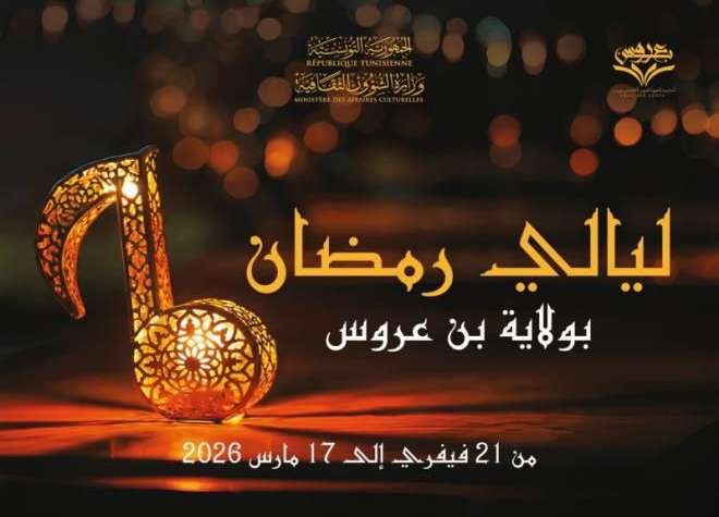 تحتفي ولاية بن عروس بليالي شهر رمضان المعظم من 21 فيفري إلى 17 مارس 2026، من خلال برنامج ثقافي ثري ومتنوع أعدّته المندوبية الجهوية للشؤون الثقافية وشمل مختلف المعتمديات في الجهة.