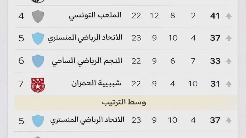 وفي مباراة أخرى، تعادل نجم المتلوي سلبا مع الأولمبي الباجي، ليرفع المتلوي رصيده إلى 28 نقطة في المركز الثامن، مقابل 22 نقطة للأولمبي الباجي في المركز 13.