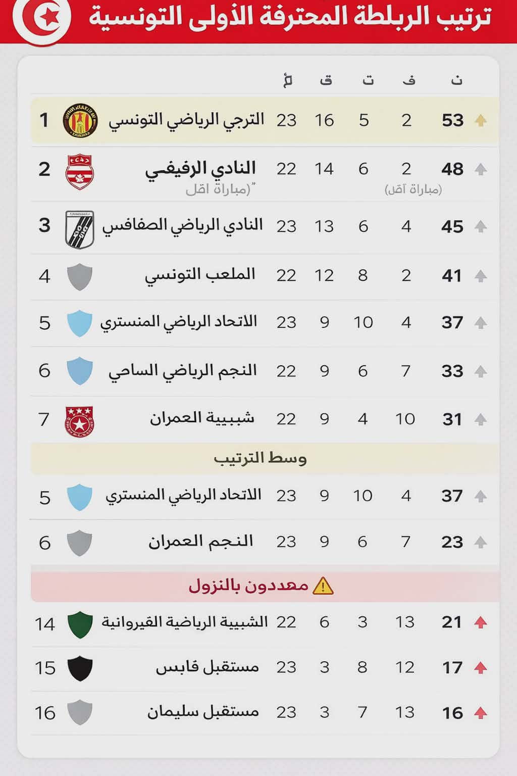 ترتيب البطولة الوطنية المحترفة الأولى لكرة القدم