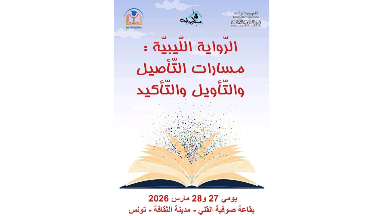 تحت إشراف وزارة الشؤون الثقافية، يُنظّم بيت الرواية بالتعاون مع اللجنة الوطنية اللّيبيّة للتربية والثقافة والعلوم ومسرح أوبرا تونس ندوة فكرية بعنوان: “الرّواية اللّيبيّة: مسارات التّأصيل والتّأويل والتّأكيد..” وذلك يومي 27 و28 مارس 2026 بقاعة صوفية القلي بمدينة الثقافة الشاذلي القليبي.