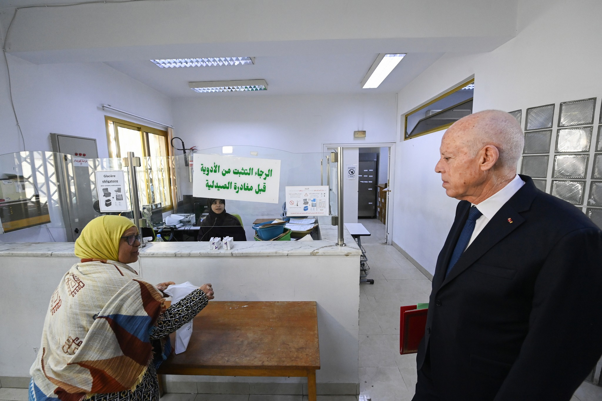 واطّلع رئيس الدولة خلال هذه الزيارة على طرق توزيع الأدوية وآليات تحديد المواعيد، كما عاين عدداً من النقائص المرتبطة بتقديم الخدمات الصحية والتزوّد بالأدوية خاصة وأن هذه المصحّة تُعدّ من أبرز المراكز المختصّة في توزيع الأدوية الخصوصية وتصفية الدم.