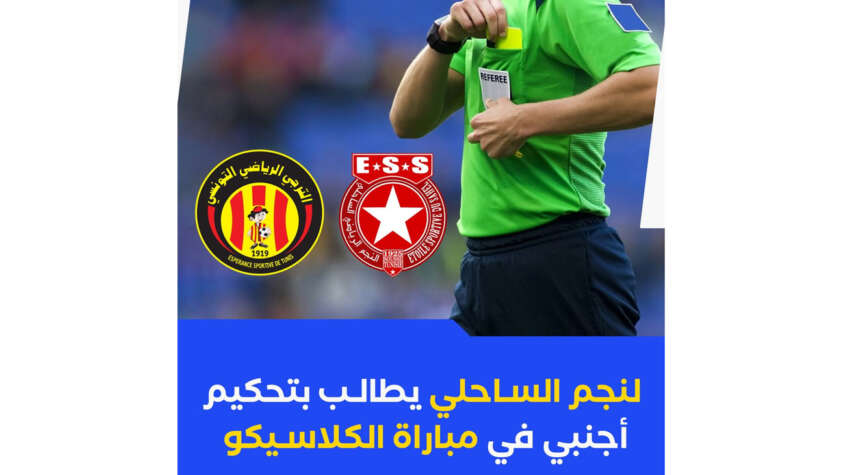 جدّدت الهيئة المديرة للنجم الرياضي الساحلي تمسّكها بضرورة تعيين طاقم تحكيم أجنبي، ويفضّل أن يكون من جنسية أوروبية، لإدارة المواجهة المرتقبة أمام الترجي الرياضي التونسي، وذلك في ردّها على مراسلة الجامعة التونسية لكرة القدم.