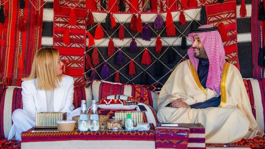 وجاءت زيارة رئيسة الوزراء الإيطالية إلى السعودية في إطار جولة خليجية تشمل الإمارات، وقطر، وقالت في لقاء تلفزيوني قبل وصولها إلى السعودية، إن دول الخليج “صديقة لنا واستراتيجية لمصالحنا وزيارتي لها لفتة تضامن معها” وذلك في أعقاب ما تتعرض له دول مجلس التعاون من هجمات عدائية إيرانية طالت منشآت طاقة وبنى تحتية وأماكن متفرقة.