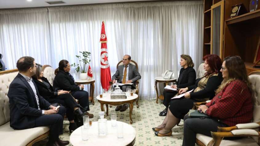 استقبل وزير التجهيز والإسكان، صلاح الزواري الاثنين 06 أفريل 2026، بمقر الوزارة رئيسة المكتب الفرعي لمنطقة المغرب العربي لبرنامج الأمم المتحدة للمستوطنات البشرية،عايدة ربانة، وذلك بحضور إطارات من الإدارة العامة للإسكان والإدارة العامة للتخطيط والتعاون وتكوين الإطارات.