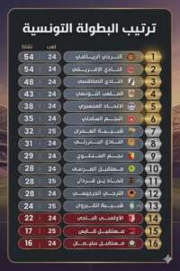 2026-04-10 ترتيب البطولة التونسية الصحافة اليوم 2026-04-10 107 Share on Facebook Share on Twitter و جاء الترتيب إثر افتتاح مباريات الجولة 25 لبطولة الرابطة المحترفة الأولى كما بلي: