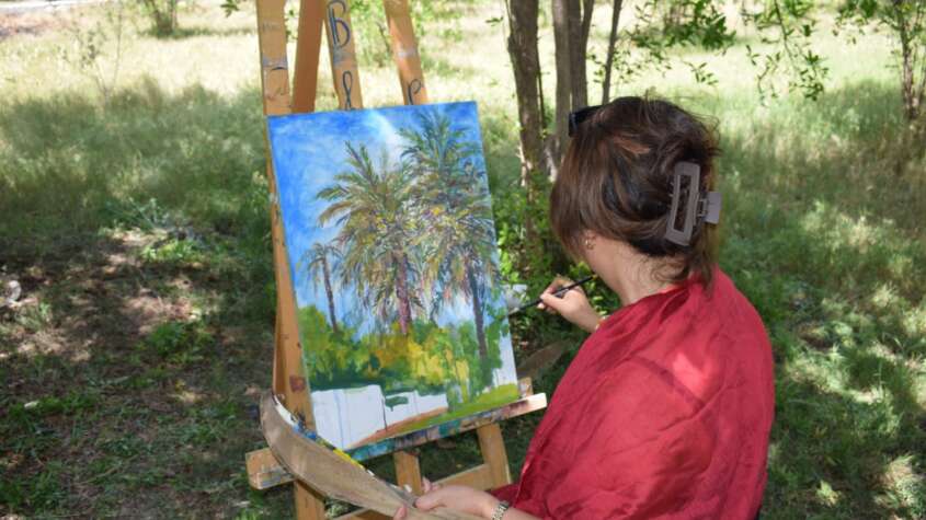 لتتواصل أشغال الورشات في فضاء جميل وملهم كالغابة الخضراء بنخيلها الشاهق وأشجار الرمان والبساط الأخضر