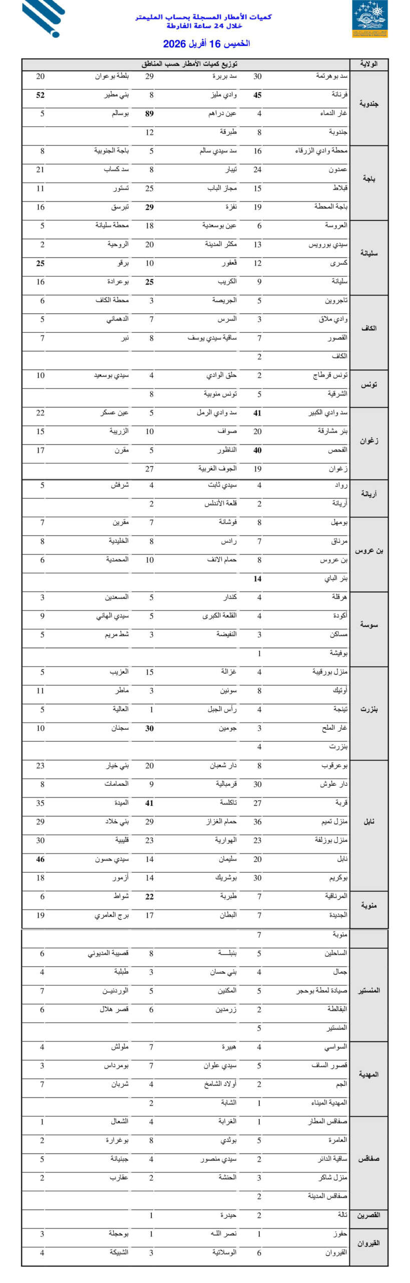 كميات الأمطار خلال الـ24 ساعة الماضية