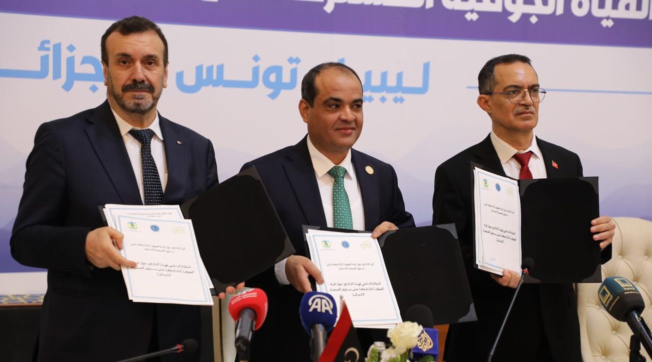 توصلت تونس وليبيا والجزائر، خلال اجتماع وزاري ثلاثي بالعاصمة الليبية طرابلس، إلى اتفاق لتعزيز التعاون في إدارة الموارد المائية الجوفية المشتركة بالصحراء الشمالية، والتأكيد على حوكمة مستدامة لمجابهة تحديات ندرة المياه والتغيرات المناخية.