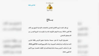 بمناسبة تنظيم الإنتخابات الرئاسية 2024: تعليق الدروس بصفة استثنائية بكافة المؤسسات التربوية والجامعية يوم 5 أكتوبر الجاري