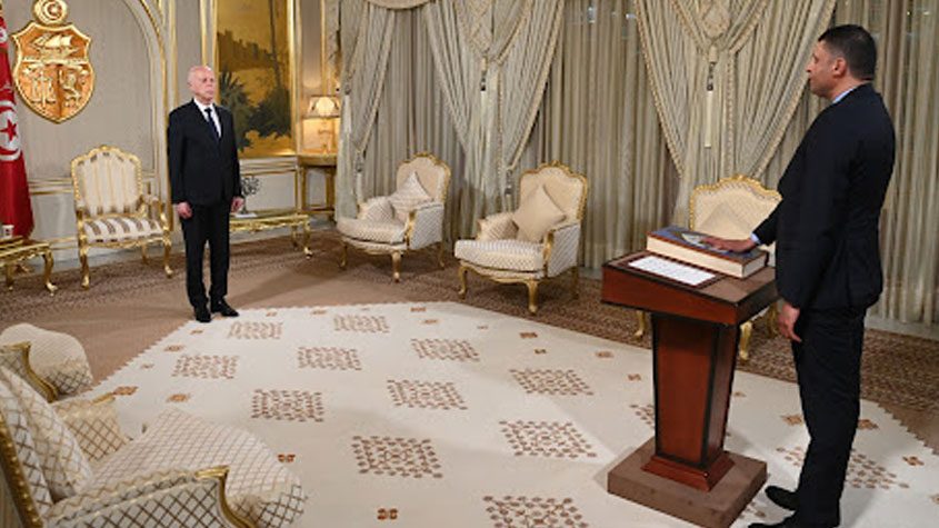 قرر رئيس الجمهورية قيس سعيد أمس السبت إجراء تحوير جزئي على الحكومة عين بمقتضاه: - السيد خالد النوري وزير ا للداخلية خلفا للسيد كمال الفقي - السيد كمال المدوري وزيرا للشؤون الاجتماعبة خلفا للسيد مالك الزاهي - السيد سفيان بن الصادق كاتب دولة لدى وزير الداخلية مكلفا بالأمن الوطني وأدى أعضاء الحكومة الجدد اليمين أمام رئيس الجمهورية الذي إستقبل إثر ذلك بحضور السيد أحمد الحشاني رئيس الحكومة كلا من الوزيرين المعفيين كمال الفقي ومالك الزاهي