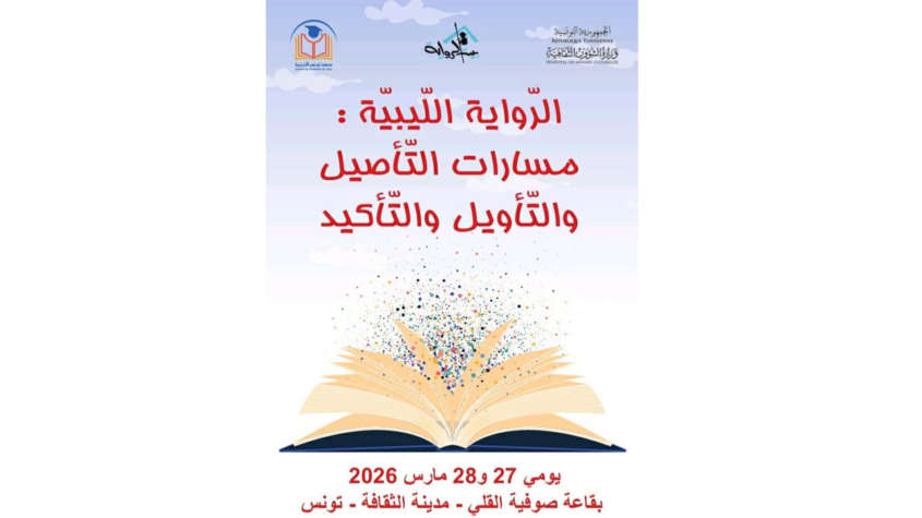 تحت إشراف وزارة الشؤون الثقافية، يُنظّم بيت الرواية بالتعاون مع اللجنة الوطنية اللّيبيّة للتربية والثقافة والعلوم ومسرح أوبرا تونس ندوة فكرية بعنوان: “الرّواية اللّيبيّة: مسارات التّأصيل والتّأويل والتّأكيد..” وذلك يومي 27 و28 مارس 2026 بقاعة صوفية القلي بمدينة الثقافة الشاذلي القليبي. ويشارك في جلساتها العلمية ثلة من الأدباء الروائيين والنقاد والأكاديميين من تونس وليبيا وفق البرنامج المصاحب. والجدير بالذكر أن أشغال الندوة ستنشر ضمن منشورات بيت الرواية في كتاب يوثق الورقات المقدمة ويوزع يوم الافتتاح ليكون مرجعا للكتاب والطلبة والباحثين.